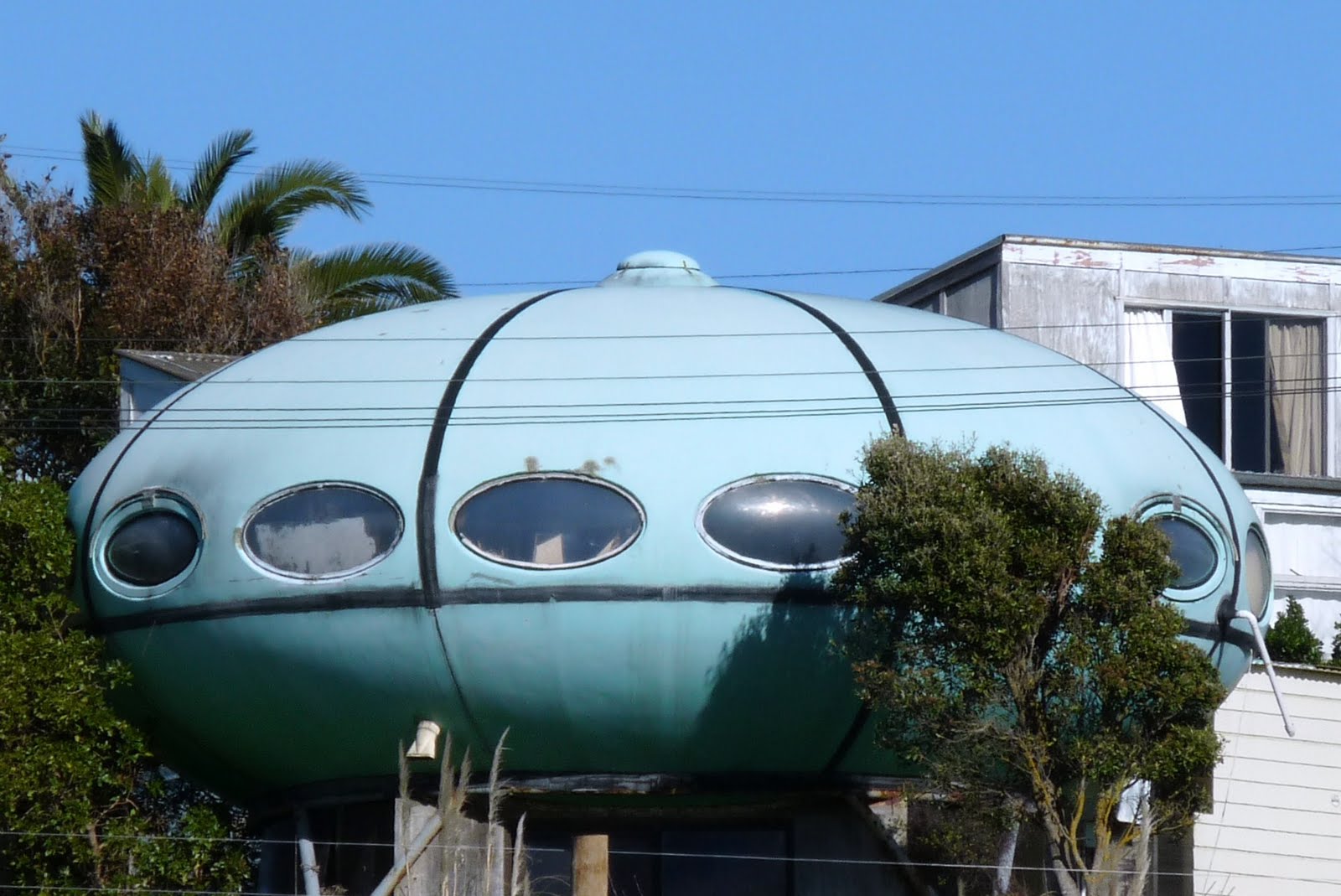 The Raglan Futuro has now been sold; the sale was for $80K and was for the Futuro only, neither the land nor the other buildings were a part of the deal. The buyer was from Christchurch; no indications as yet of whether the Futuro will move there but since the land was not a part of the deal the assumption must be that it will be moved from its current location. Thanks for keeping me up to date with developments Sue. Update 030613 In email correspondence with a local entrepreneur I am told that he Futuro did not sell at the auction March 2nd. That same local entrepreneur is currently working on a possible purchase which, if successful, would almost certainly add another Futuro to the list of those available for rent. We will likely know the outcome of that within a week or two. Me, I am keeping my fingers crossed all goes well; this would almost certainly provide another opportunity for those who have an interest in the Futuro House to get just a little taste of the "Futuro" experience by renting one for a vacation. Update 020413 It seems that the Raglan Futuro is on the market; up to be auctioned at 5:00 PM March 2nd 2013. The property at 115 Riria Kereopa Memorial Drive can be found listed for sale by Ray White Real Estate here In the listing we read that the property up for sale includes the spaceship, a second dwelling, a large 3 car garage and a brand new 30 year lease. There are open viewings February 6th and 9th and the property will be auctioned March 2nd if no one purchases it before then. A Waikato Times article by Daniel Adams that can be found on stuff.co.nz provides more information on the listing along with a little historical context. Adams tells us that: "Ray White real estate agent Stephen O'Byrne says there is good interest in the quirky offering, priced at 'high twos, low threes'." The article goes on to recount how sea captain Peter Farrell decided to buy the Futuro after some of his junior officers saw it in Tauranga in the 1970s. Sadly Mr. Farrell recently passed and hence the upcoming auction. Good luck to all who bid; I would love one of those bidders to be me but sadly such a thing is way beyond my means and in any case Raglan is half way around the globe from where I "lay my hat". Here's hoping a true Futuro "nut" wins the auction and that the Futuro gets the attention and care I for one believe it deserves. Original Information 100311 The Futuro at Raglan, New Zealand is owned by a retired ship's captain who bought it on the spot when his ship berthed one day and he saw the Futuro. The Captain had it located at Whangaparaoa for several years but on his retirement relocated it to its current home in Raglan. The Futuro is seated on a concrete base though the standard steel support frame is also visible and it appears to be in excellent condition and still in use. In a post on the Raglan Futuro the blog Gorgeous with Attitude references an interview with the Captain by Venetia Sherson that was part of the research for the book Baches of Raglan [Venetia Sherson; Andrea Wilkinson; David B Cook; Beryl Fletcher; Waikato Institute of Technology]. The book, no longer in print [Amazon, Google Books, WorldCat, Better World Books] was published in 2008 and was the work of the students and lecturers of the Waikato Institute Of Technology. The Captain is quoted as describing the Futuro as "... one space. The kitchen is about six inches higher than the lounge area the bed is tucked in behind a screen, out of sight. The toilet and shower are just outside the main area." and he calls it his "moon house". Not surprisingly the Captain says that children love the Futuro and that [if the parents allow it] he even likes to tell them a "little white lie" and say it actually came from outer space." As an interesting aside and a comment on both my intelligence and on the problems with making assumptions I actually searched many times and many places for a book titled "Beaches Of Raglan" thinking that "Baches" was a typo. Only after several failed searches did I try with the original spelling and discover that a "bach" was a holiday or beach home. The "confirmed" date for this Futuro is the date of the Robyn Gallagher Image - 122610. Sources & Reference: